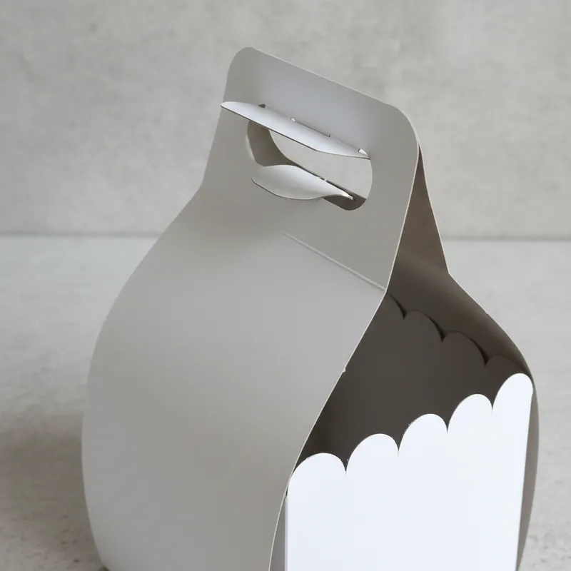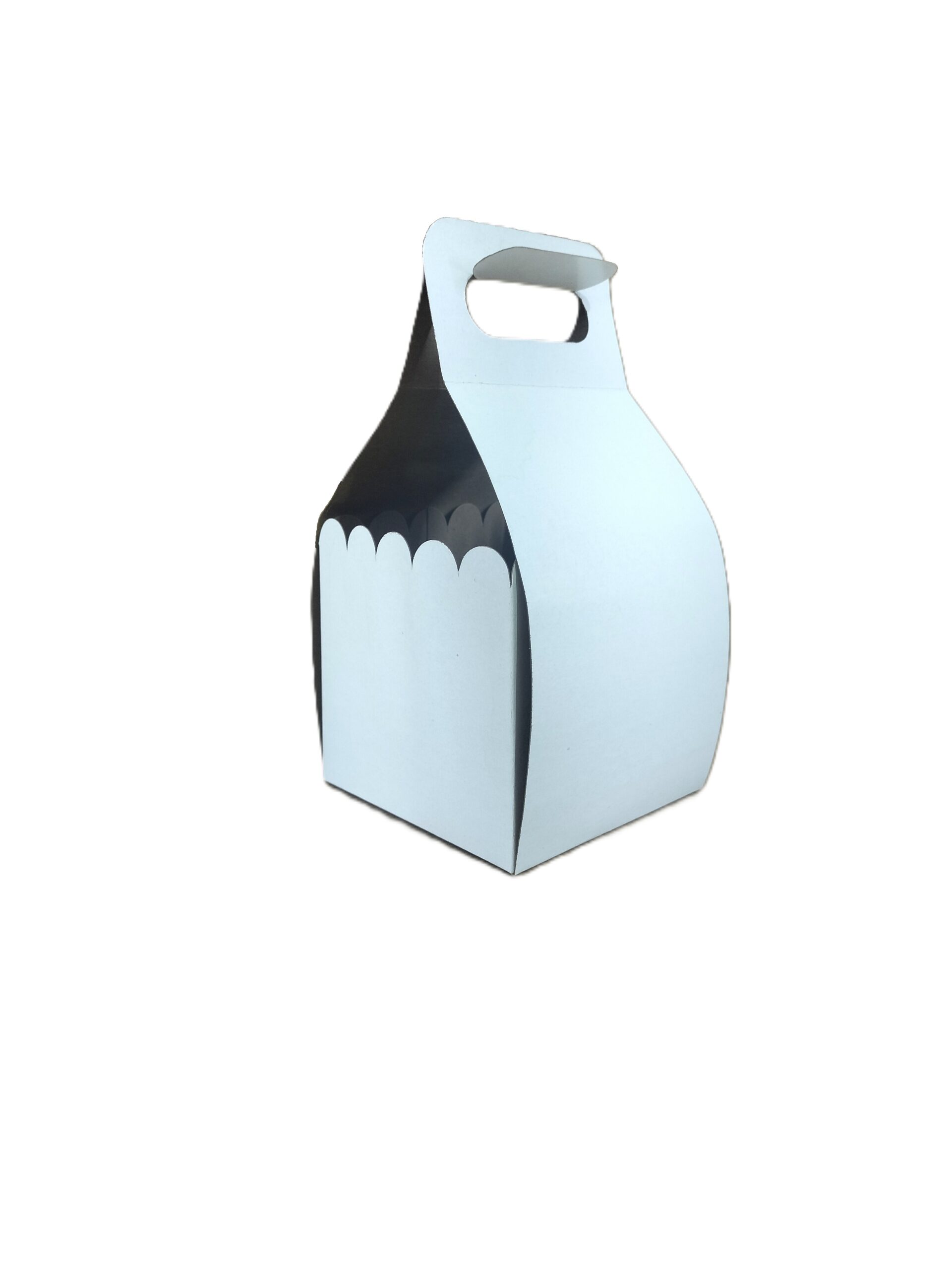 Caja tipo canasta ideal para dulces y chocolates, en cartón caple de 18 pts. con medidas de 10 largo x 10 ancho x 18 cm. Alto.