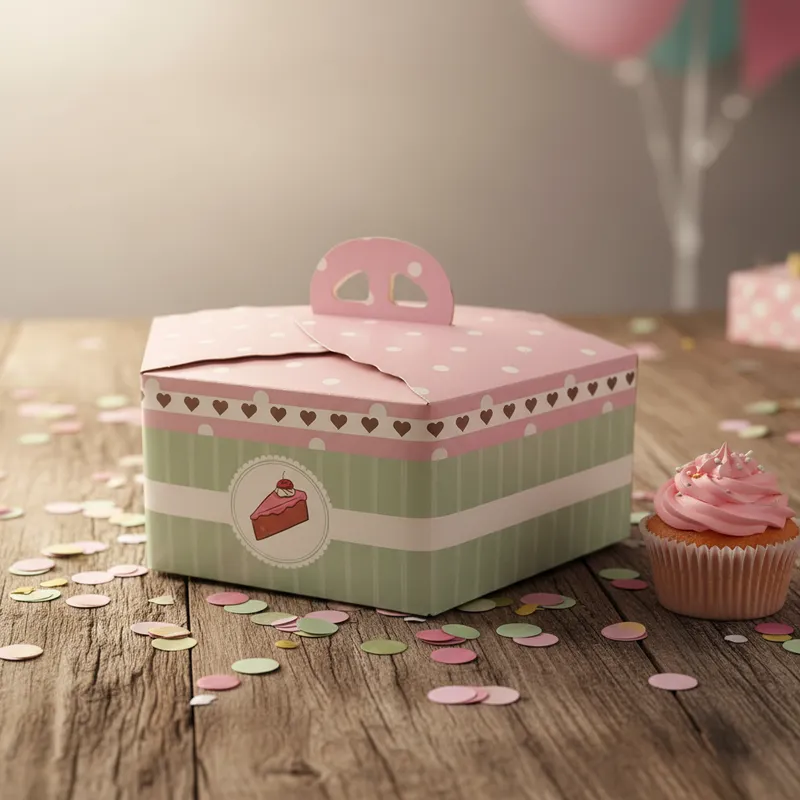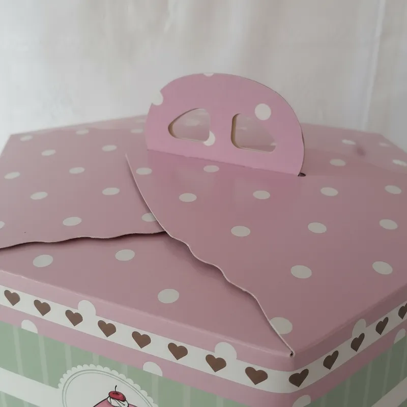 Dales a tus productos una presentación única con la caja hexagonal diseñada para aportar un estilo distintivo, elegante que resalte y proteja el pastel, la reposterìa fina, el regalo etc. Fabricada en caple de 22 pts. 100 % reciclable, higiénico grado alimenticio, con una resistencia de 2.5 Kg. Es el empaque ideal para tus productos. Mediana: 30 x 30 x 12 cm. (largo x ancho x alto) Cantidad: 1 paquete de 50 piezas.