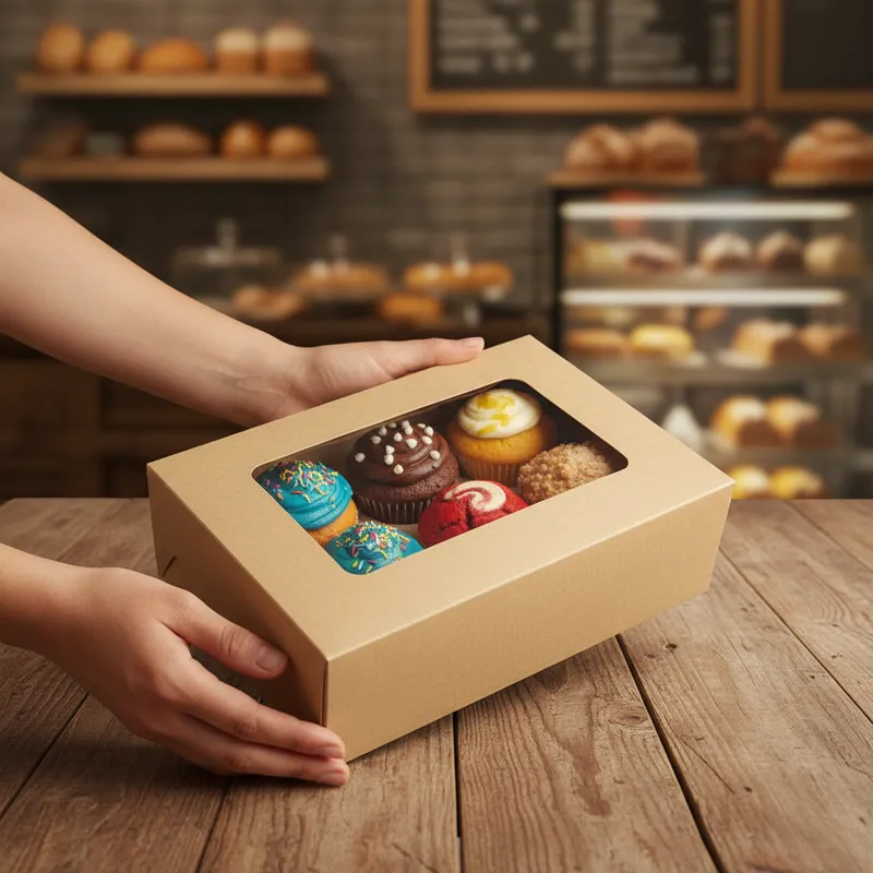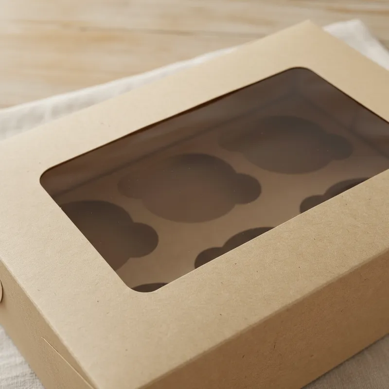 Caja para seis muffin, cup cake, quequito ó dulces, elaborada en cartón caple de 18 puntos, resistente y de grado alimenticio, 100 % reciclable. Cuenta con una ventana de celofán transparente en la parte superior que permite ver el producto sin necesidad de abrir, brindando una presentación atractiva. En su interior incluye una base especial que mantiene el pastelillo firme y seguro durante el transporte. Ideal para venta en línea, exhibidores, refrigeradores y vitrinas . Medida : 24 x 16 x 7.5 cm. (largo x ancho x alto) Cantidad: 1 paquete de 50 piezas.