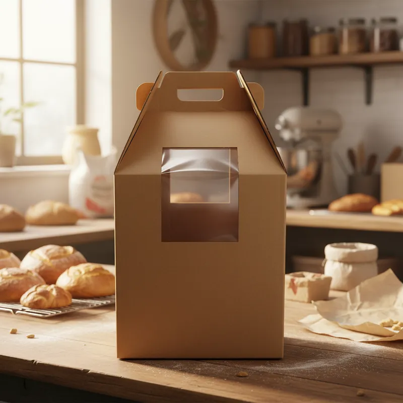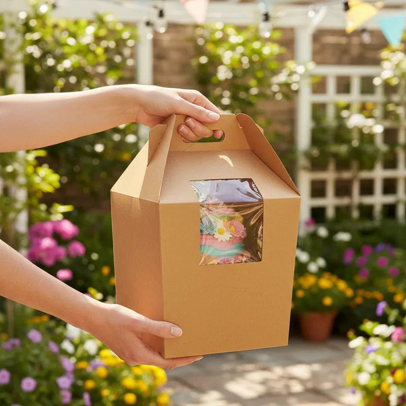 Caja elaborada en cartón corrugado sencillo kraft, Flauta «C» resistencia de 9/11 kg. Ideal para resguardar pasteles y postres de manera segura. Su diseño cuadrado permite transportar pasteles altos con comodidad. Cuenta con asa para su fácil manejo y dos ventanas de celofan en la parte superior, que ofrecen una atractiva vista del interior sin necesidad de abrir, realzando la presentación de tus creaciones. Es práctica, ecológica 100 % resiclable y funcional, perfecta para reposterías, pastelerías o eventos especiales.